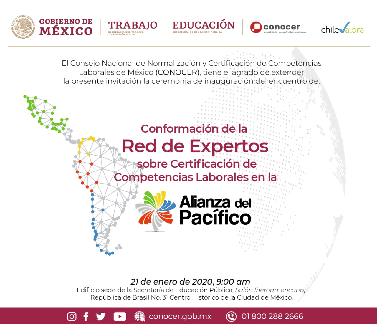 Del 21 al 23 de enero se realizó, en la Ciudad de México, un encuentro que contó con la participación de expertos de los países de la Alianza del Pacífico y fue organizado por la Secretaría del Trabajo y Previsión Social (STPS) y el Consejo Nacional de Normalización y Certificación de Competencias Laborales (CONOCER) de México en colaboración con Chile Valora, y el apoyo de EUROsociAL. OIT/Cinterfor tuvo el honor de participar en calidad de observador.