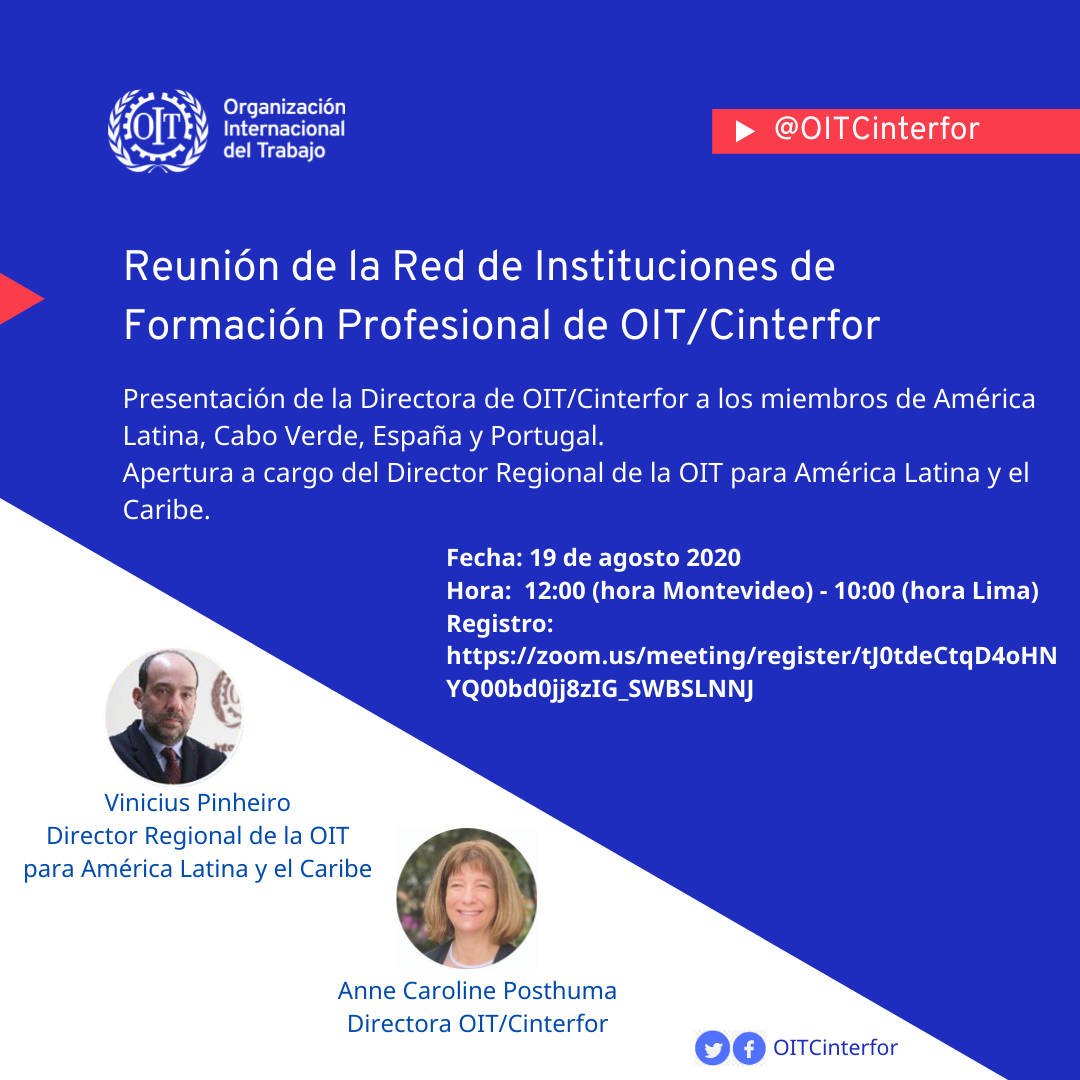 En el día de hoy se realizó la primera reunión virtual de presentación de la nueva Directora de OIT/Cinterfor, Dra Anne Caroline Posthuma, a las instituciones de formación profesional miembros de la red de Cinterfor en América Latina, España, Cabo Verde y Portugal.